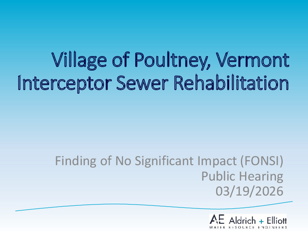 Presentation of Aldrich & Elliot regarding Poultney Village’s rehabilitation of sewer interceptor line